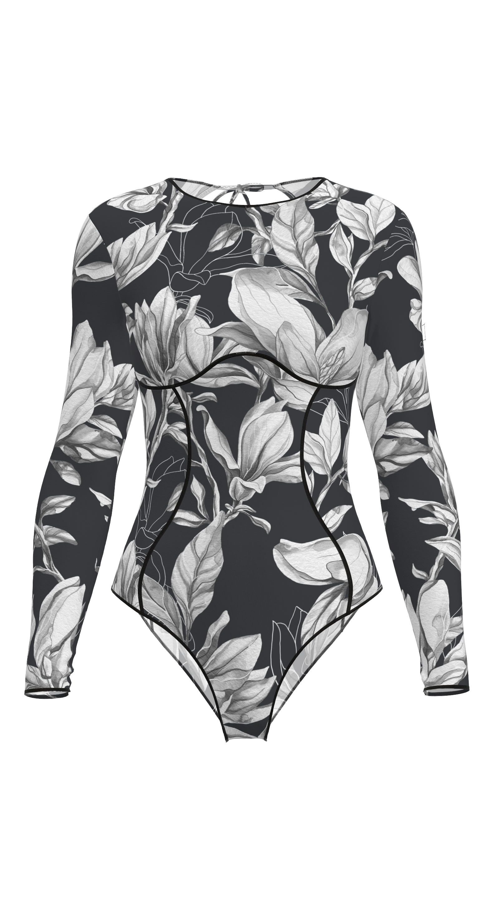 Суцільний купальник з декоративними швами, які візуально моделюють фігуру та підкреслюють лінії тіла. Акцентні кольори обробки додають шарму, кожен патерн виглядає особливо.
